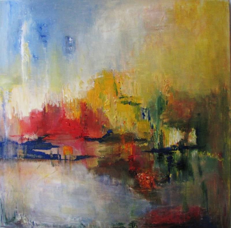 kleurimpressie rood/blauw, 60/80, € 125,-